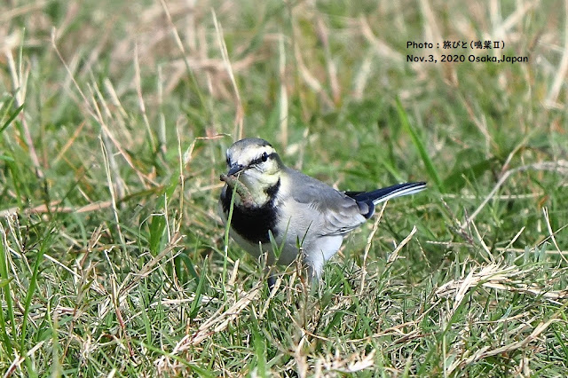 15.目の前にハクセキレイが飛んで来た。首から上に黄色みがついている。第一回冬羽の若鳥なのか。綺麗な姿だ。