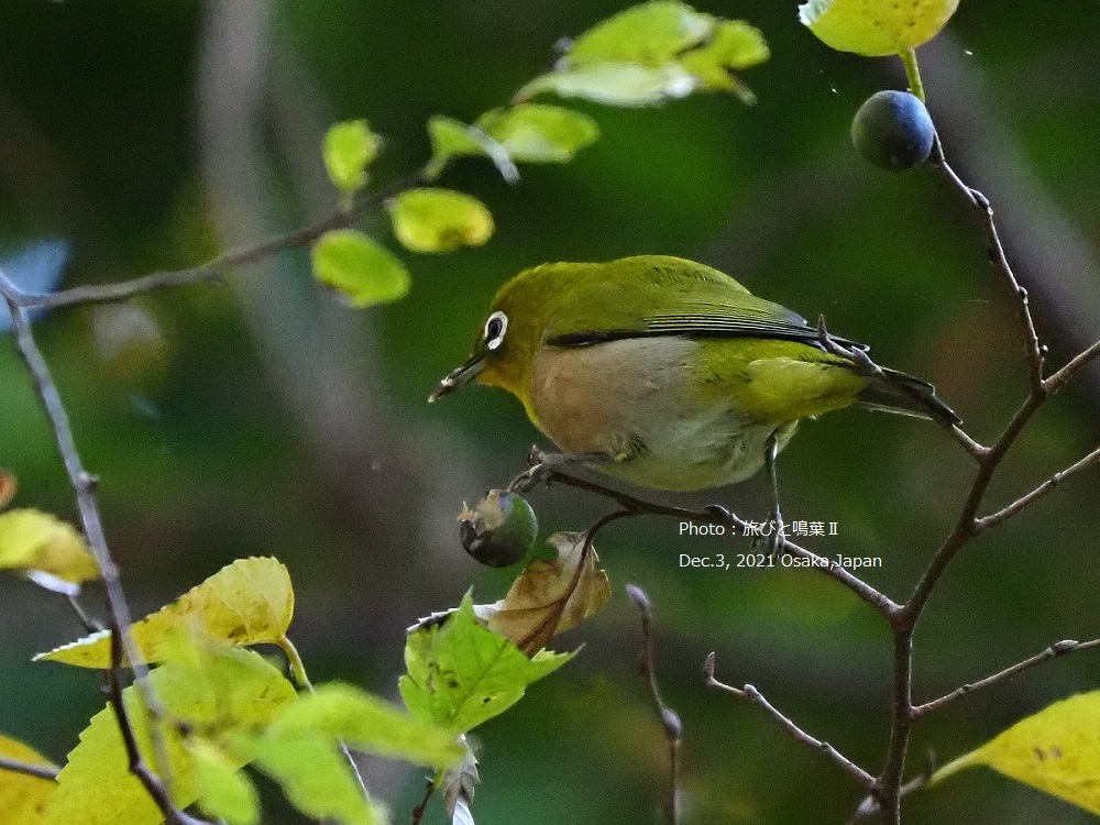 ★★ノイバラの実をついばむメジロ 2021.12.3 河川敷