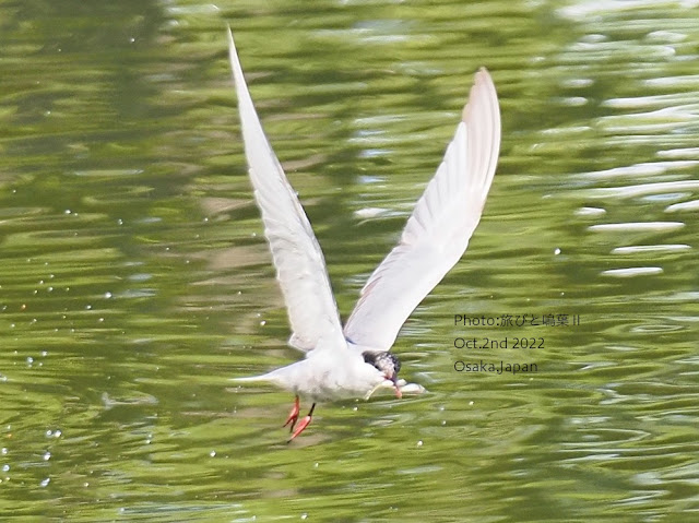 大阪の城北公園にクロハラアジサシが1羽来た。先日大阪城公園の外堀で目撃されている個体だろう。帰宅して数冊の野鳥図鑑で調べると、どうも、夏羽から冬羽に換羽中の成鳥だと思われる。中には幼鳥ではないかという人もいた。