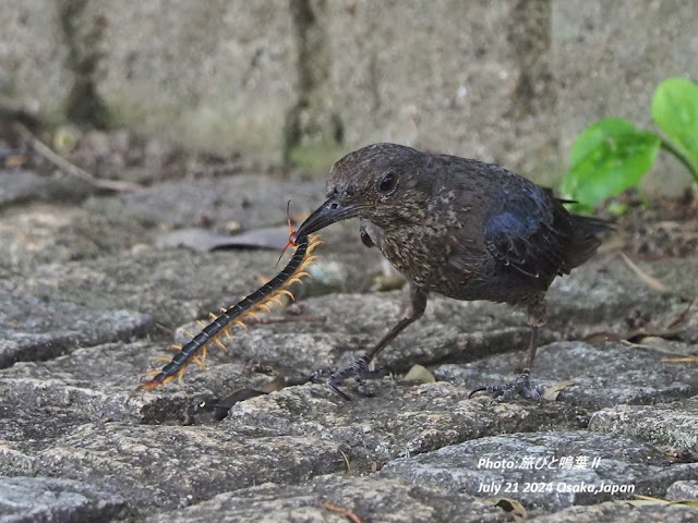 イソヒヨドリと百足 Blue Rock Thrush 磯鵯(Iso-Hiyodoli)25cm 留鳥